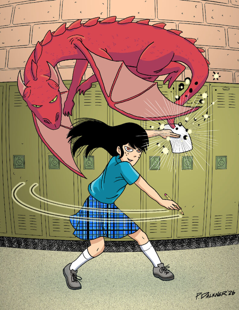 As I’ve mentioned in the past, I run an afterschool comic book club at my children’s school. I give a little presentation and outline for projects at the beginning of each meeting. When I talk about how to make comic book covers and splash pages it’s the first time that the students get to use markers and pens to ink their drawings. In order to demonstrate how to do this I prepare a number of sample penciled drawings and ink them in front of the students to show them what to do. Here are some pieces I couldn’t help myself from finishing after the session was over. One that’s a nod to one of my favorite artists growing up and some with K-Pop Demon Hunters vibes. Kudos to you if you can name that inspirational artist and the referenced cover. 😉